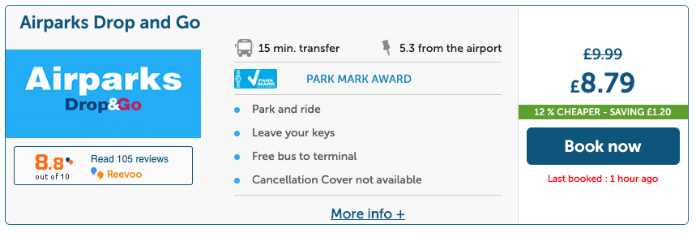 Of course, this method does require at least one of you to get a free shuttle bus, so if you’re not keen on that idea, you could always park in one of the airport’s own car parks instead.