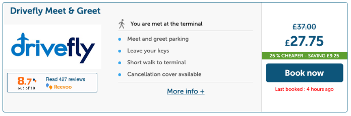 When we tried it out, again using promo code COMPARE, we got a price of £20.24, which is actually half the £41 price tag if you book direct.