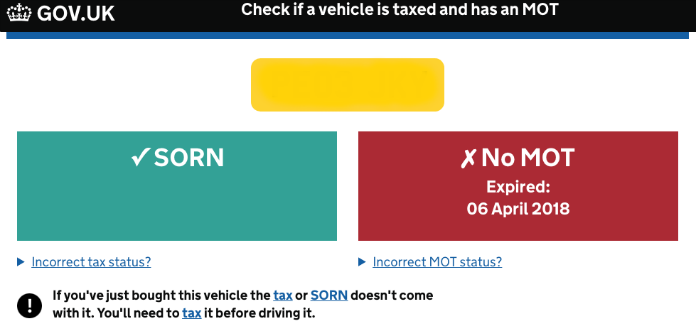 However, the green SORN box shows that it has been legally declared it off the road, and therefore it is exempt from tax.