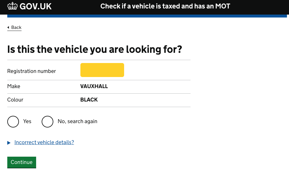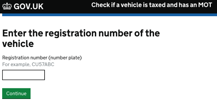 Head over to gov.uk/check-vehicle-tax and you’ll see something like the below: