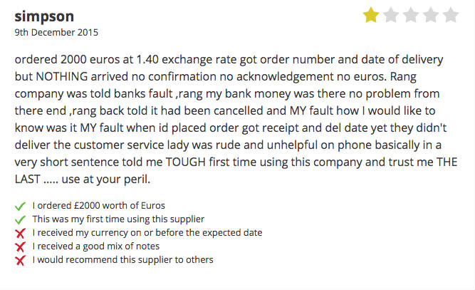 However, do a bit of scrolling and you’ll see a couple of one- and two-star reviews. One from Simpson — who says he never received his money — and one from Eleanor, who got everything quickly but it was all in 100 and 200 Croatian Kuna (about £12 and £24 respectively).